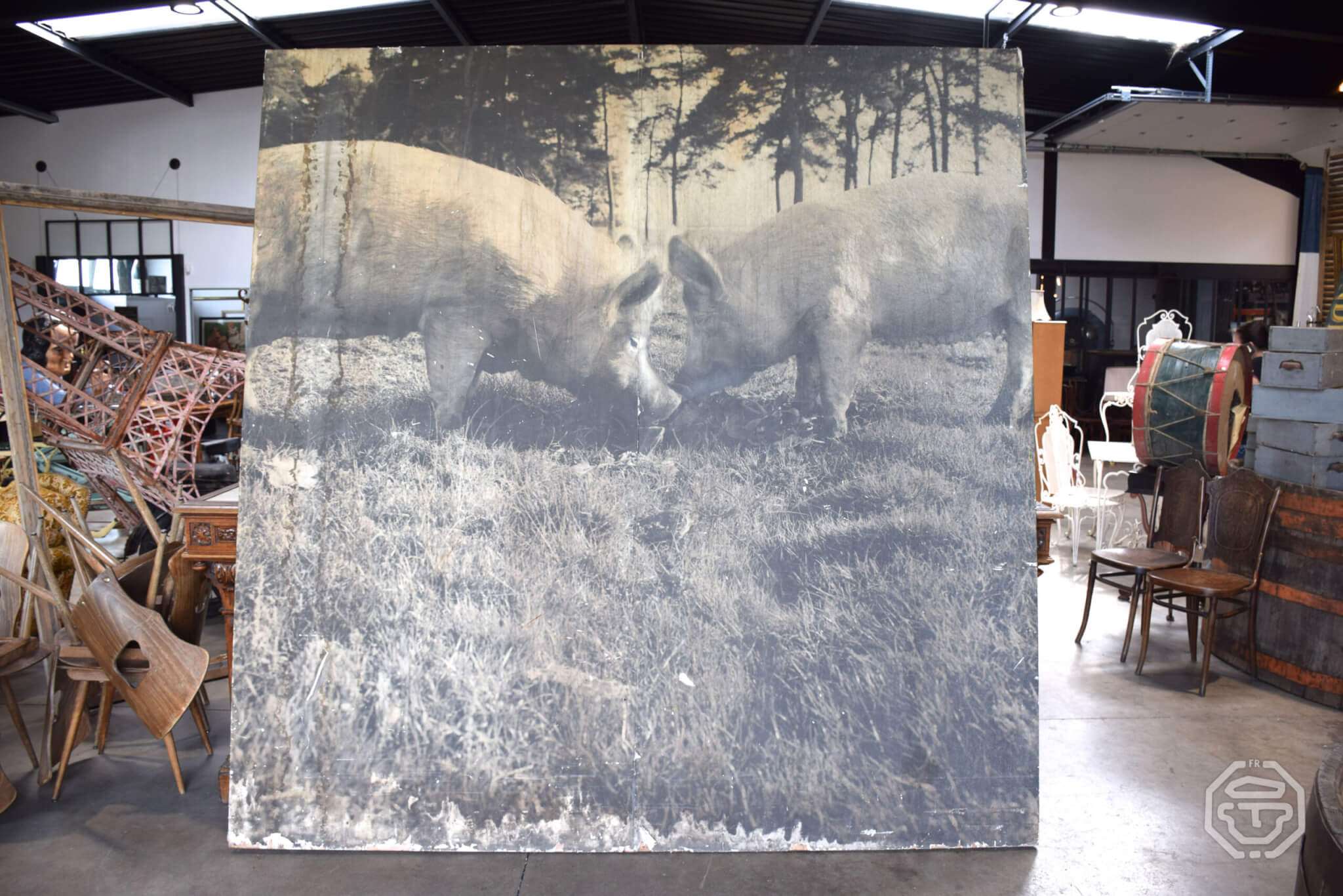 Décor Boucherie charcuterie Vintage, immense photographie sur cadre de bois.